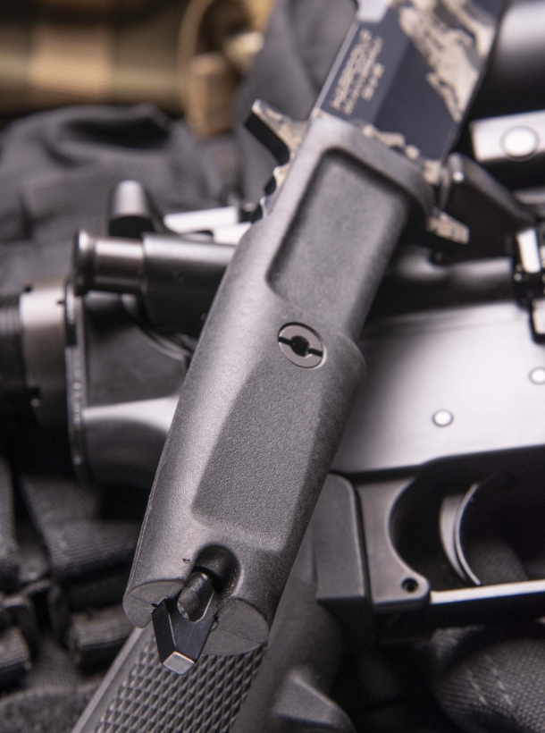The grip is the usual, ergonomic Extrema Ratio grip, made with Forprene, a polymer that offers excellent grip with good vibration dampening properties, for comfortable, prolonged use in the most strenuous circumstances.